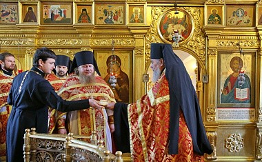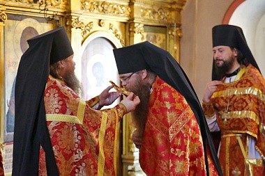 Его Высокопреподобию сослужили заместитель председателя Синодального отдела по монастырям и монашествующим архимандрит Стефан (Тараканов) и братия Николо-Угрешского монастыря в священном сане.