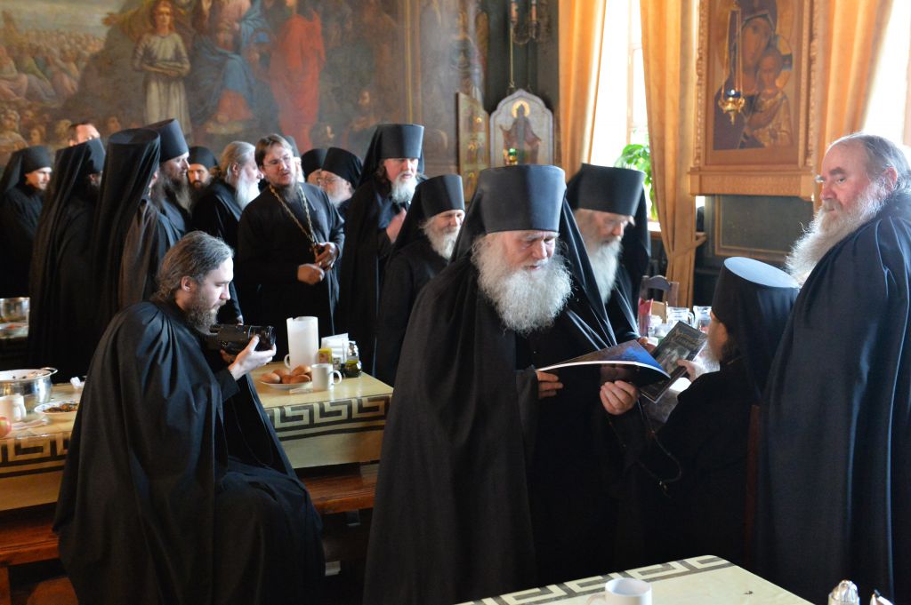 По окончании богослужения поздравление Святейшего Патриарха Московского и всея Руси Кирилла с днем тезоименитства архимандриту Венедикту передал заместитель председателя Синодального отдела по монастырям и монашеству архимандрит Стефан (Тараканов).