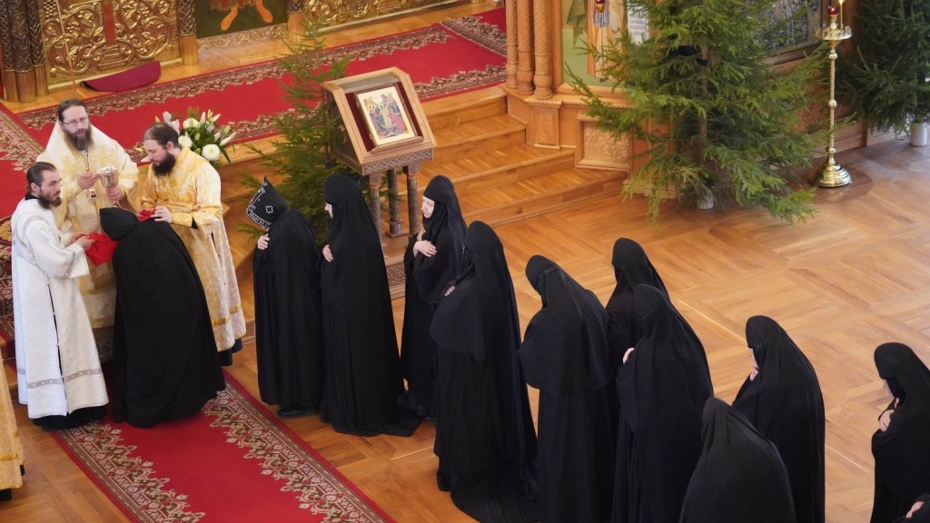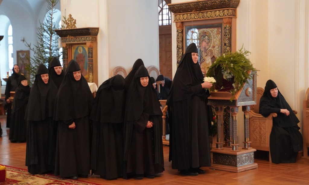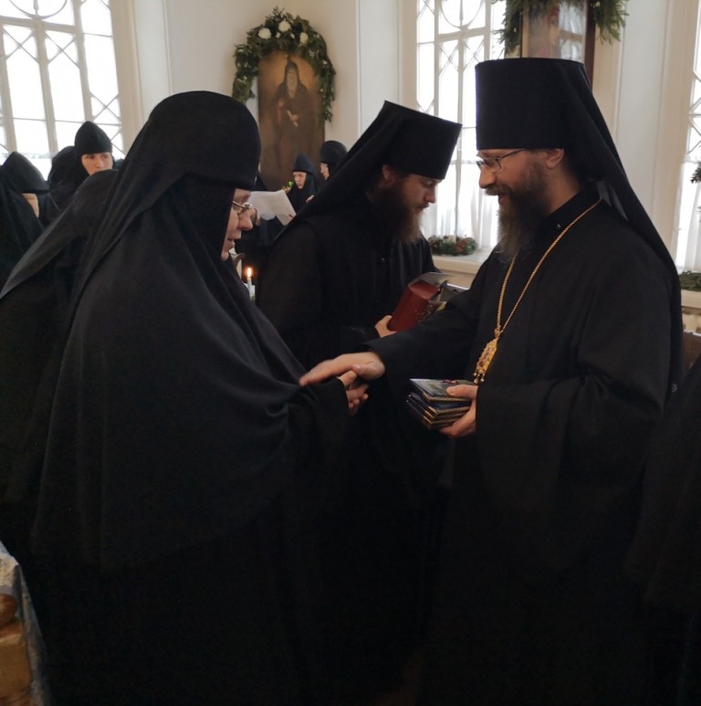 Поздравить с праздником Рождества Христова и новолетием настоятельницу монастыря игумению Сергию (Щербакову) и сестер обители, а также разделить радость совместного богослужения прибыли братия монастыря Оптина пустынь во главе с его наместником епископом Можайским Леонидом, викарием Патриарха Московского и всея Руси.