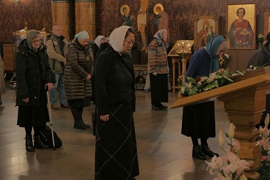 По окончании Литургии епископ Леонид рассказал в своей проповеди об истории образа Божией Матери «Знамение», а также призвал обратить внимание на слова Священного Писания: «Сыне, даждь ми твое сердце» (Притч. 23:26).
