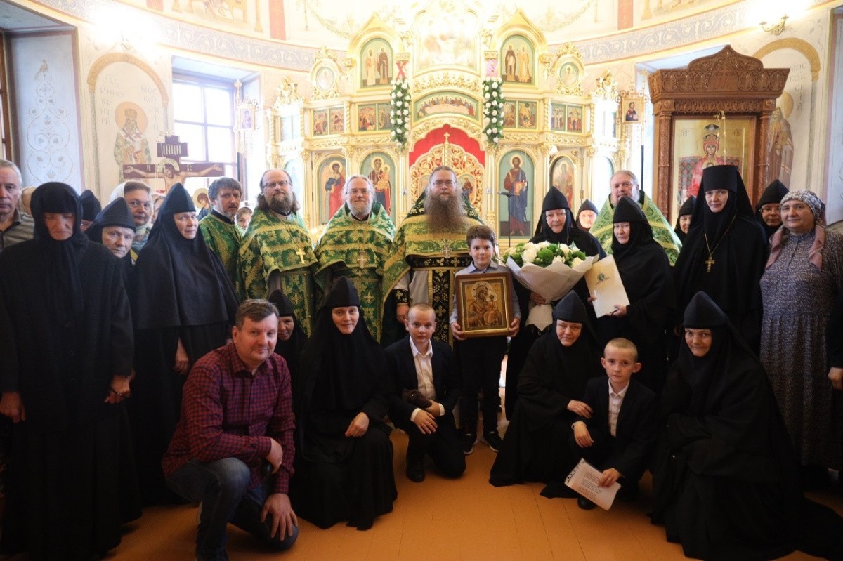 Также отец Стефан передал поздравления и благодарность от председателя Синодального отдела по монастырям и монашествующим митрополита Каширского Феогноста. От братии Саввино-Сторожеской обители архиамндрит Стефан сказал матушке слова признательности за ее труды и благотворительность и передал в дар Смоленскую икону Божией Матери.