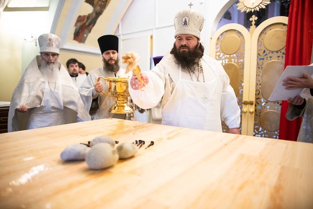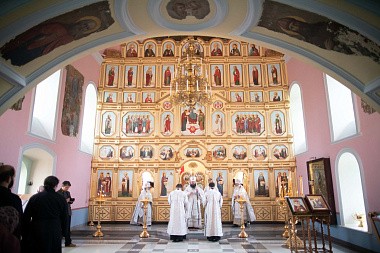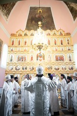 После освящения храма состоялась Литургия, на которой епископу Парамону сослужили настоятель Гефсиманского скита архимандрит Дамиан и братия обители. По окончании богослужения владыка наместник поздравил молящихся с освящением нового храма и обратился к ним с архипастырским словом: