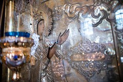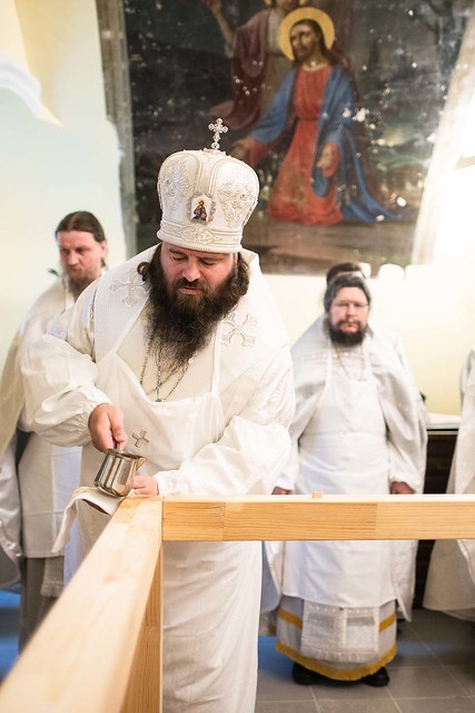 Сегодня молящиеся смогли увидеть уже полностью восстановленный Боголюбский храм - он красиво украшен как снаружи, так и внутри. Во время освящения храма епископом Парамоном было совершено омовение и помазание святого престола, облачение престола и жертвенника, освящение стен храма, а также перенесение и положение под престол и в антиминс святых мощей.