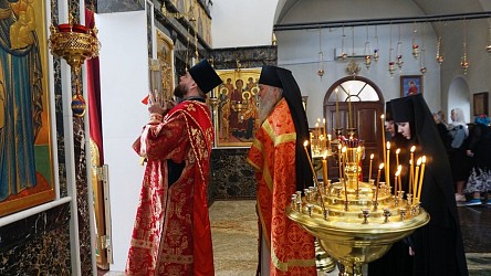 После Литургии священнослужители поздравили всех женщин с праздником жен-мироносиц, иерей Владимир Зыков произнес проповедь о празднуемом событии, хор спел многолетие игумении Неонилле с сестрами.