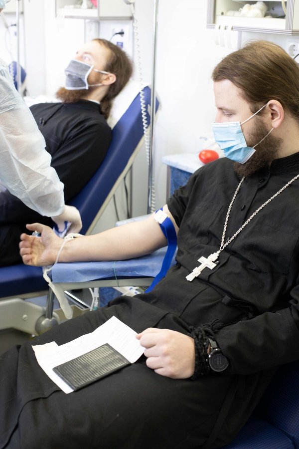 Насельники Троице-Сергиевой лавры приняли участие в акции по сбору донорской крови, «движимые искренним желанием оказать посильную помощь тем, для кого переливание крови станет шагом к спасению жизни», сообщает официальный сайт монастыря. Благотворительная акция проходит у стен обители впервые, подчеркивается в сообщении.