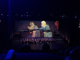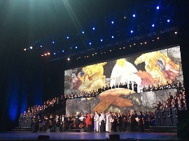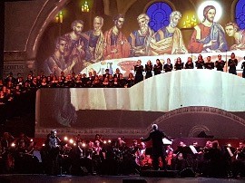 Хор и солисты исполняли произведения на церковнославянском языке, что усиливало впечатление от евангельского текста, а параллельное сопровождение текстов на специальных мониторах в русском переводе помогало неподготовленным слушателям понимать исполняемое.