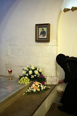 В храме-усыпальнице прп. Романа Сладкопевца у гробницы монахини Досифеи отец Николай Мальцев отслужил панихиду, произнес слово о почитаемой старице, а в завершение подарил молящимся открытки с ее портретом.
