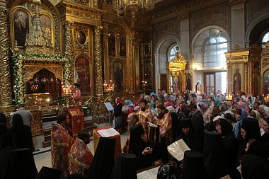 В этот день по благословению Святейшего Патриарха Московского и всея Руси Кирилла в Богоявленском кафедральном соборе в Елохове у раки мощей святителя Алексия духовенство Зачатьевской обители совершило праздничный монастырский молебен.