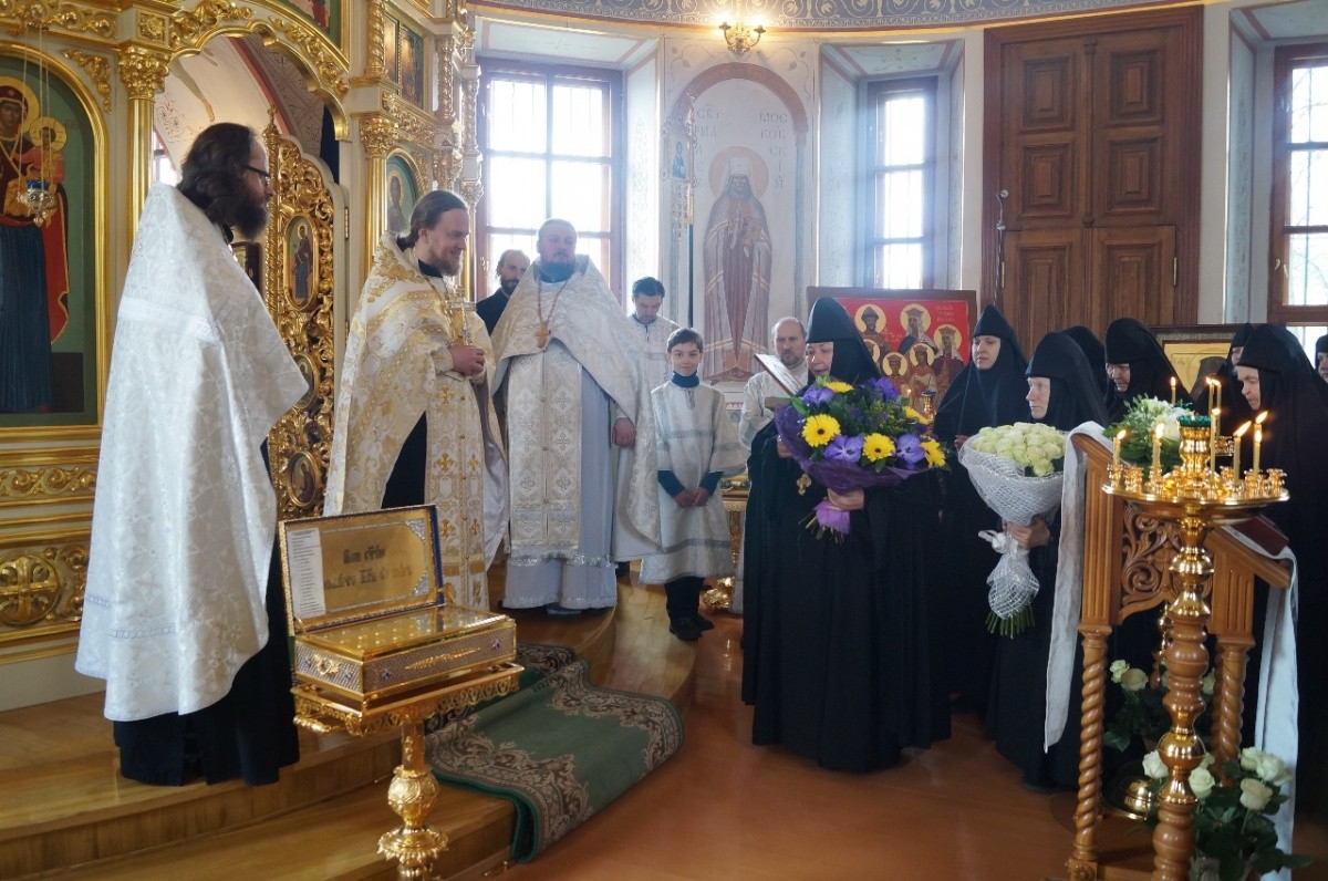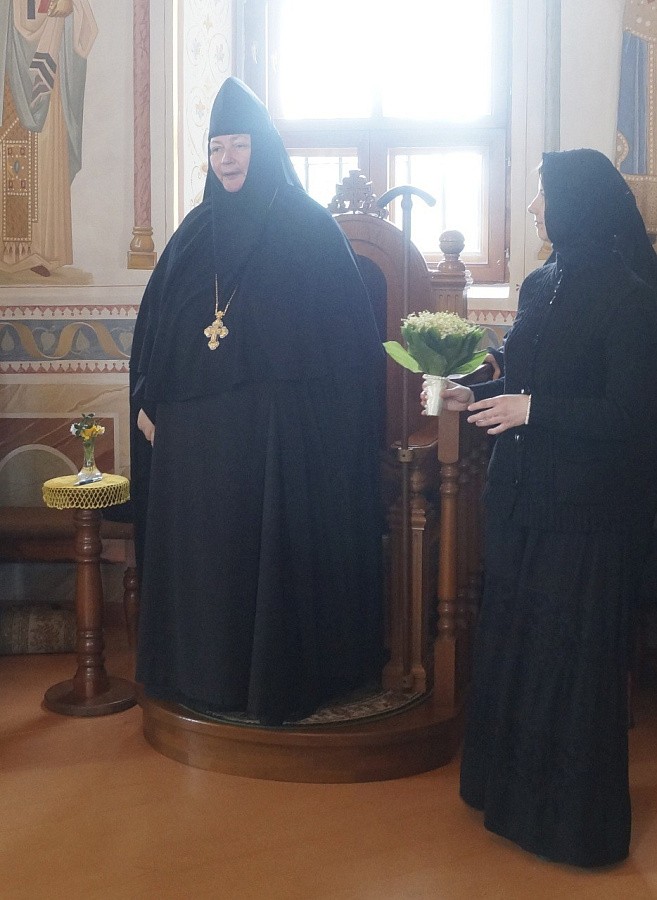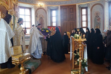 От лица духовенства иеромонах Адриан, старший священник обители, пожелал настоятельнице укрепления в ее игуменском служении, отметил важность данного послушания в деле сохранения благополучия и процветания как самой обители, так и подвизающихся под ее духовным руководством насельниц. Внешнюю красоту преподнесенных в дар матушке игумении цветов о. Адриан символически уподобил произрастающим плодам добродетелей вверенных настоятельнице сестер обители, что является утешением для самой именинницы, т.к. нет большего утешения для духовного руководителя, чем видеть восходящие плоды добродетелей в окормляемых им чадах.