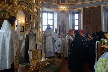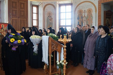 Игумения Мария поблагодарила собравшихся за поздравление и молитвы, духовенство за совершенную Божественную литургию.