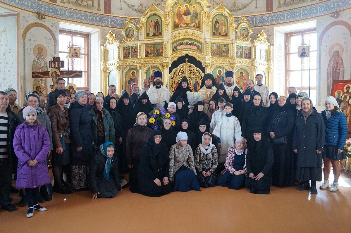 После провозглашения многолетия в пожелание матушке многих и благополучных лет жизни на благо обители и во славу Божию запечатлели этот памятный день общей фотографией на фоне иконостаса Троицкого собора обители.