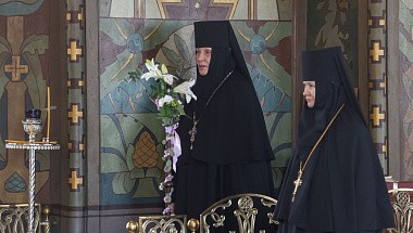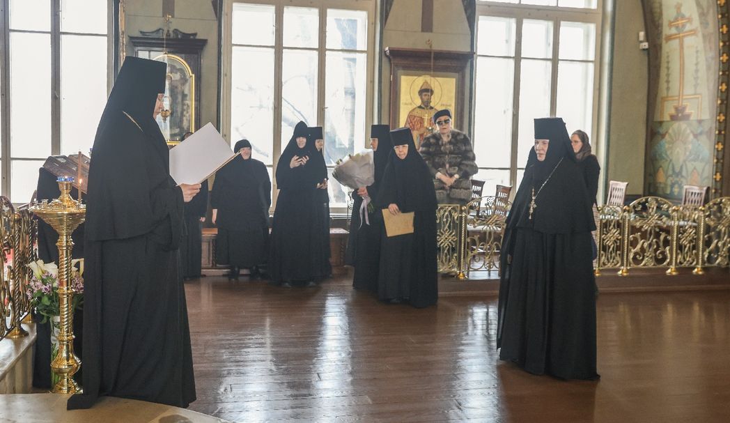 Игумения Викторина передала слова сердечной благодарности Святейшему Владыке за отеческое поздравление, благопожелания и высокую церковную награду.
