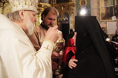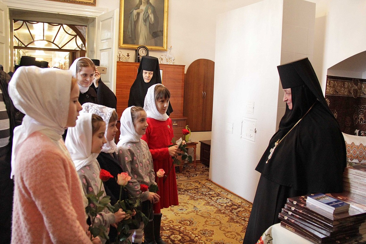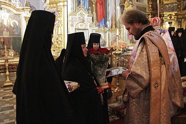 Затем с днем тезоименитства игумению Рафаилу поздравил владыка Александр. Также настоятельница монастыря поздравила с днем Ангела клирика обители диакона Михаила Гнесюка.