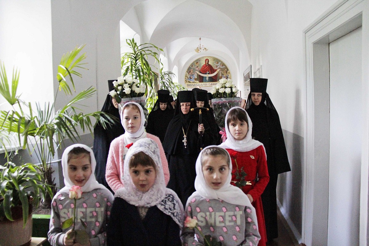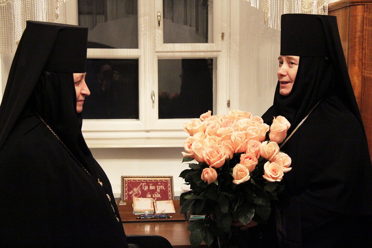 В завершение игумению Рафаилу из храма проводили в игуменские покои, где сестры обители и гости поздравили именинницу с днем Ангела. Все были приглашены на праздничную трапезу, за которой было прочитано поздравление Святейшего Патриарха Московского и всея Руси Кирилла в адрес именинницы.