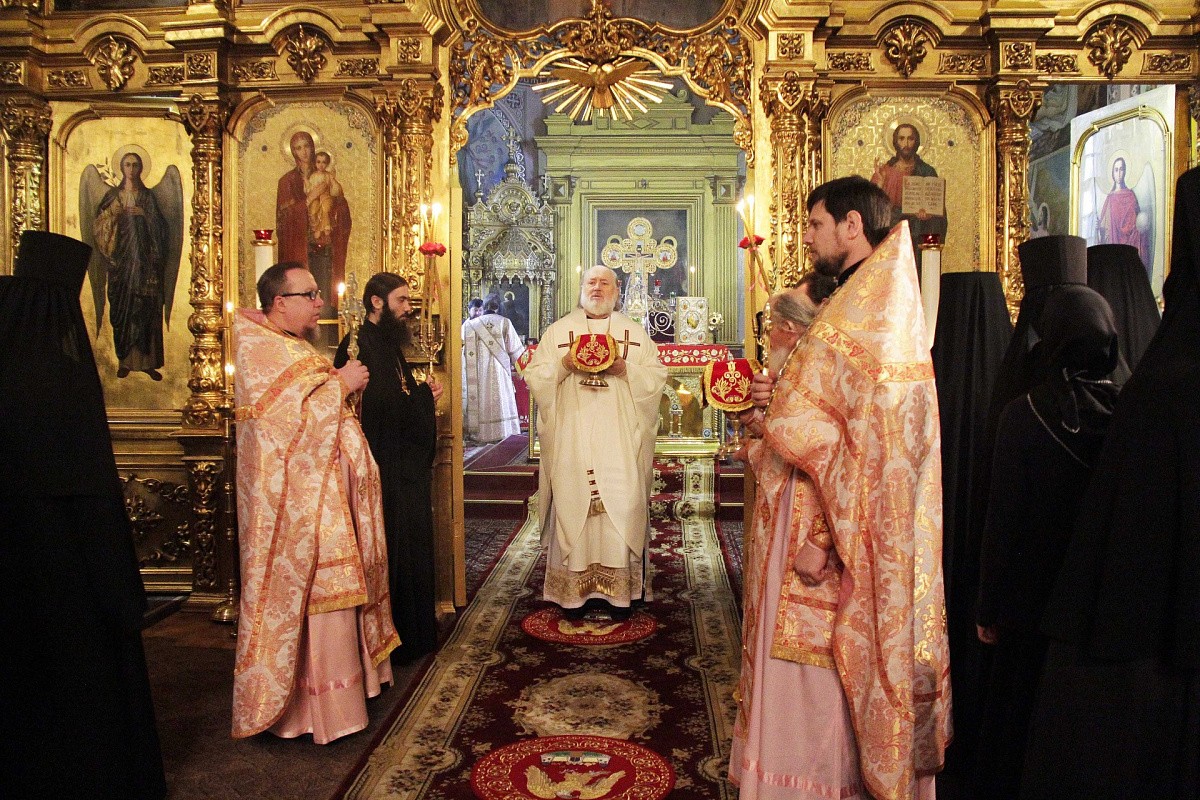 Накануне праздника было совершено всенощное бдение с литией и акафистом святому архистратигу Божию Михаилу, которое возглавил архиепископ Городницкий Александр.
