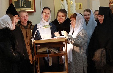 На клиросе пел хор воспитанниц регентско-певческих курсов монастыря.