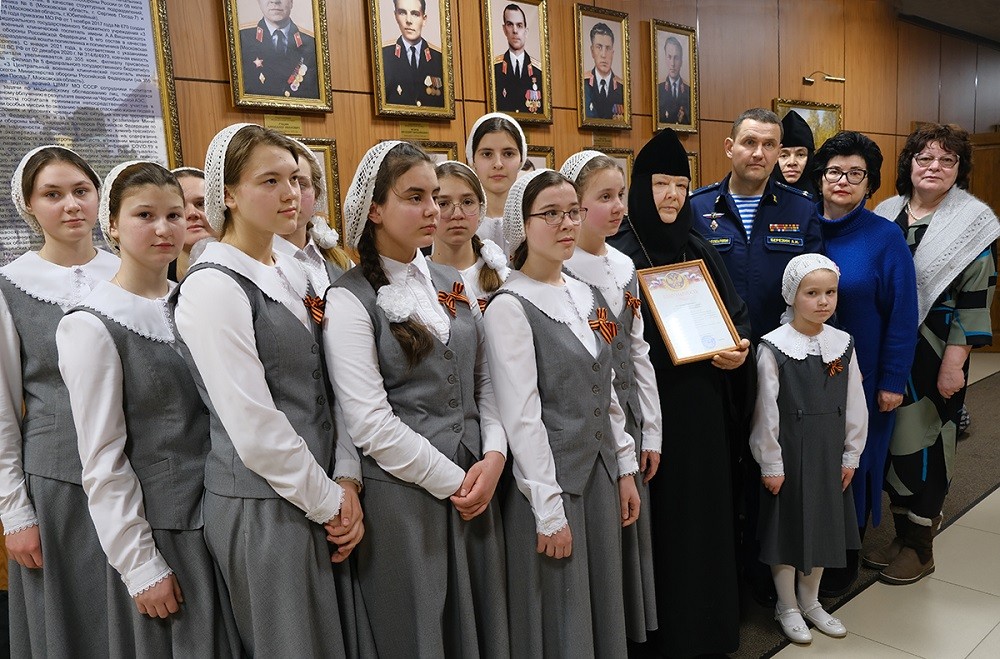 В преддверии праздника Дня защитника Отечества настоятельница Покровского Хотькова ставропигиального женского монастыря игумения Олимпиада (Баранова) с сестрами и воспитанницами Детского пансиона посетила филиал №5 ФГБУ «НМИЦ ВМТ им. А.А. Вишневского» Минобороны России.