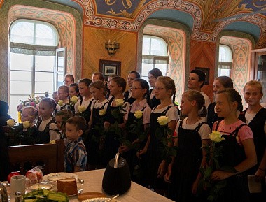 Чествование именинницы продолжилось в трапезной монастыря: для матушки Елисаветы и гостей праздника было подготовлено музыкальное приношение в исполнении сестер обители и воспитанников монастырского приюта «Ковчег».