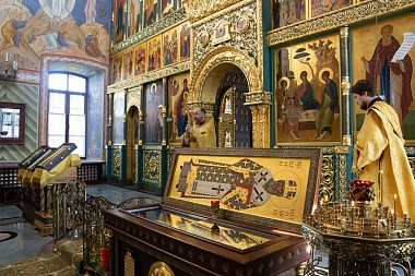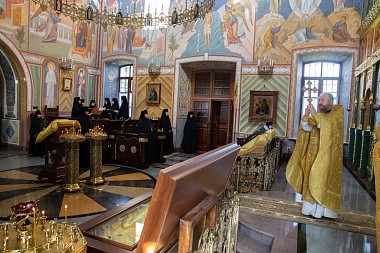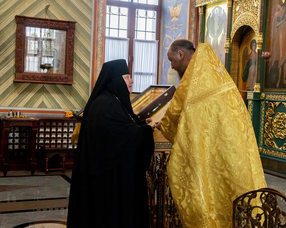 По окончании богослужения архимандрит Павел передал настоятельнице монастыря игумении Елисавете (Жегаловой) поздравление со знаменательной датой от Святейшего Патриарха Московского и всея Руси Кирилла.