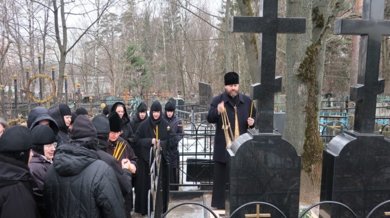 14 декабря состоялась поездка настоятельницы Зачатьевского ставропигиального женского монастыря игумении Иулиании (Каледы) с сестрами в Переделкино, где на кладбище покоятся несколько насельниц Зачатьевской обители: монахиня Антонина (Яковлева, + 1969), монахиня Марионилла (Евсеева, + 2005) и схимонахиня Херувима (Макеева, + 2010), – а также насельница Алексеевского ставропигиального женского монастыря схимонахиня Александра (Добротина, + 1970), за которой в течение шести лет до ее кончины ухаживала и жила в месте с ней монахиня Марионилла, тогда еще раба Божия Мария.
