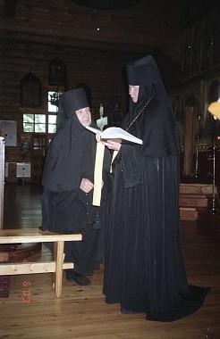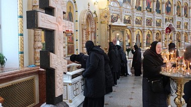 Поклонившись почившим матушкам, сестры вслед за владыкой и игумениями прошли в старинный храм Преображения Господня, находящийся в настоящее время на полной реставрации. Матушка Ксения поделилась воспоминаниями о схимонахине Александре, по монастырскому преданию перед кончиной пожертвовавшей старинную икону Божией Матери в Филипповский храм (второе название храма Преображения Господня по приделу во имя свт. Московского Филиппа).