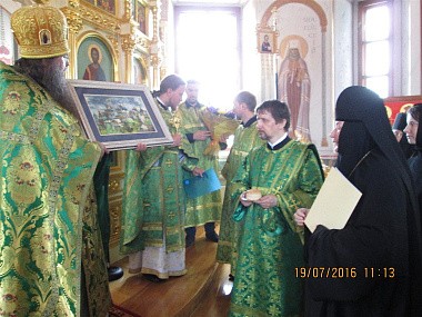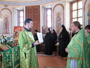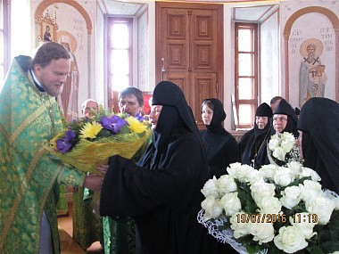 После молебна архимандрит Феофилакт обратился к игумении Марии со словами поздравления от имени Святейшего Патриарха Московского и всея Руси Кирилла: