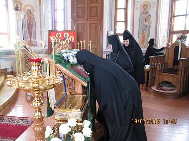 По окончании Литургии был отслужен благодарственный молебен с особой молитвой к преподобной Марии Радонежской, Небесной покровительнице игумении Марии.