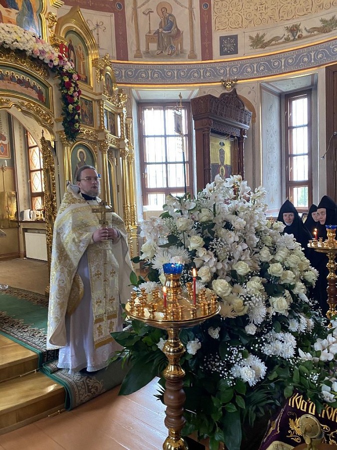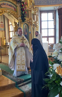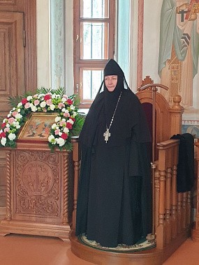 По окончании богослужения монастырское духовенство и насельницы обители соборно поздравили настоятельницу обители игумению Марию (Солодовникову) с годовщиной монашеского пострига, который состоялся 26 лет назад в Покровском Хотькове ставропигиальном женском монастыре.