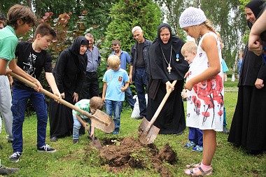 В завершение праздника общими усилиями была посажена сосна, которую насельницы монастыря подарили своей настоятельнице.