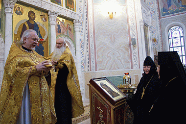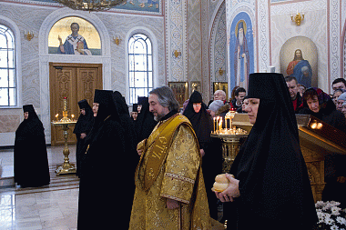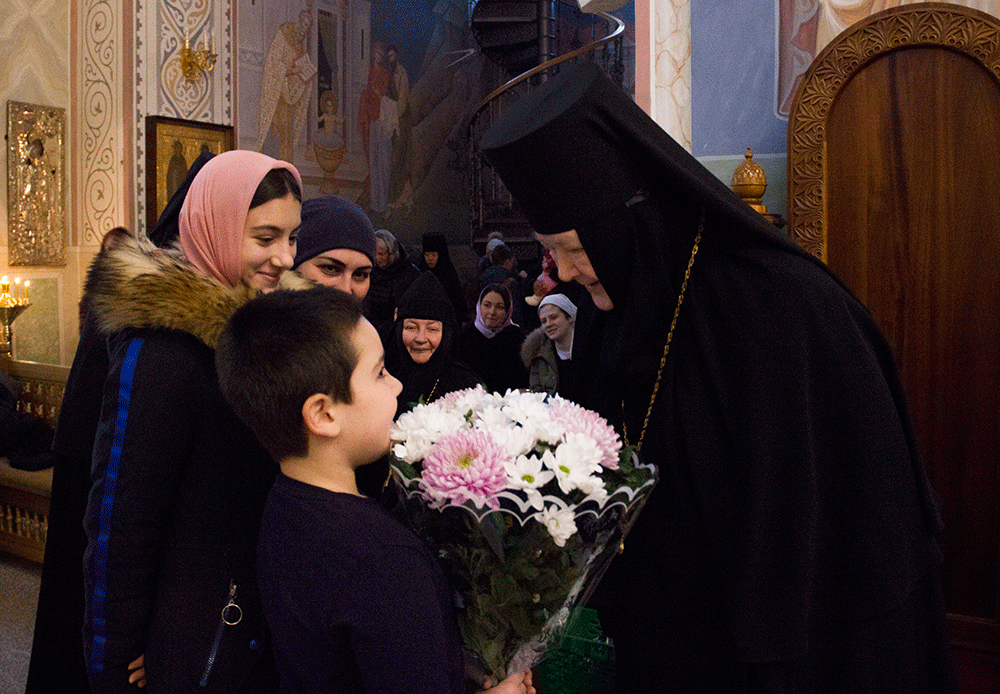 Затем отец Владимир от лица духовенства монастыря поздравил матушку Олимпиаду и всех сестер с днем игуменства.