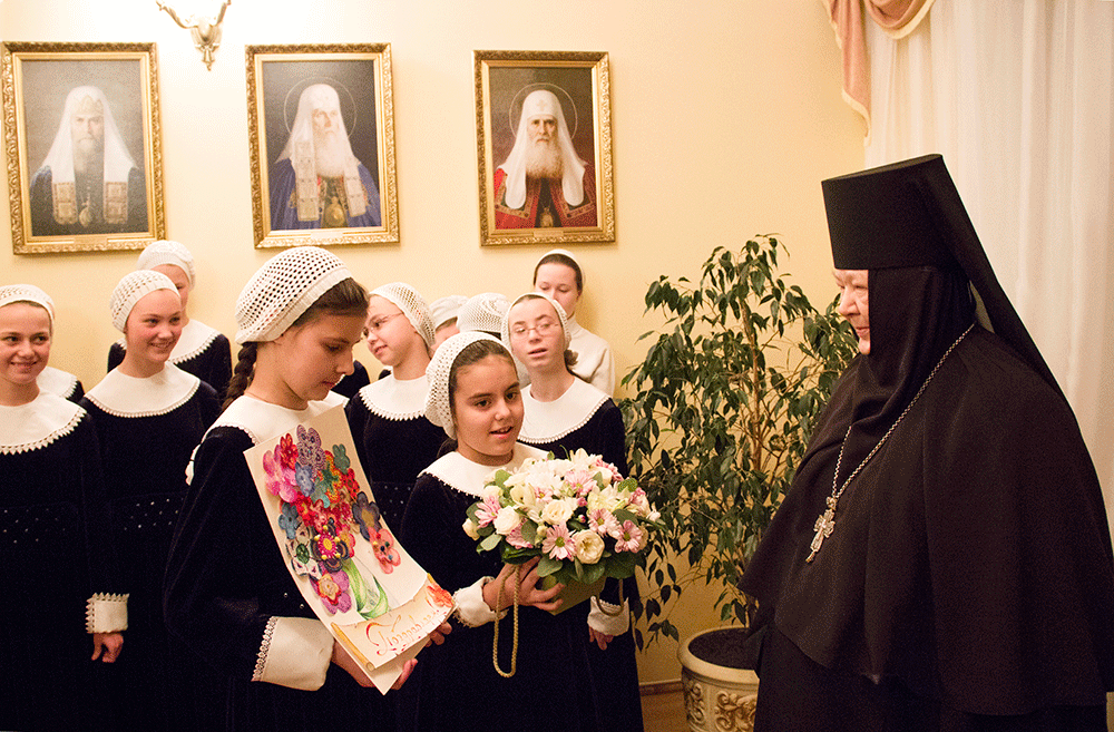 Игумения Мария также обратилась к матушке с приветственным словом, в котором рассказала о том, как начиналась жизнь в возрожденной обители.
