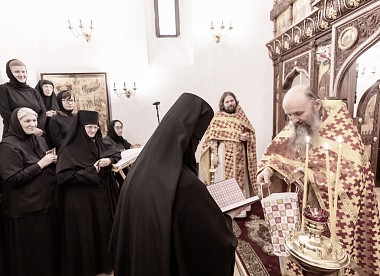 По окончании Литургии духовенство, сестры и прихожане Зачатьевского монастыря поздравили матушку игумению с днем тезоименитства.