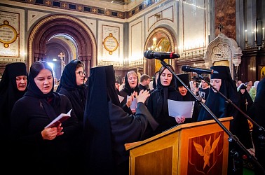 Игумения Иулиания (Каледа) с сестрами и духовенством прибыли в Храм Христа Спасителя и приложились к образу Царицы Небесной.