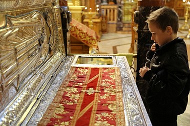 Под присмотром иеродиакона Артемия (Урбана), который является выпускником школы-интерната № 108, дети поклонились мощам святителя Николая, приложились к раке преподобного Пимена Угрешского, поставили свечи у мироточивой иконы Собора Угрешских святых. Мальчики и девочки, открывшие для себя доселе неведомый мир, внимательно слушали рассказ своего монастырского путеводителя – отца Артемия. Из Спасо-Преображенского собора отроки и отроковицы направилась в небольшую Успенскую церковь, в которой собрано много частиц мощей православных святых – наших Небесных молитвенников.