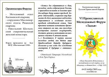 Организаторами форума также выступили Молодежный отдел Касимовской епархии и сотрудники Миссионерского отдела Рязанской епархии.