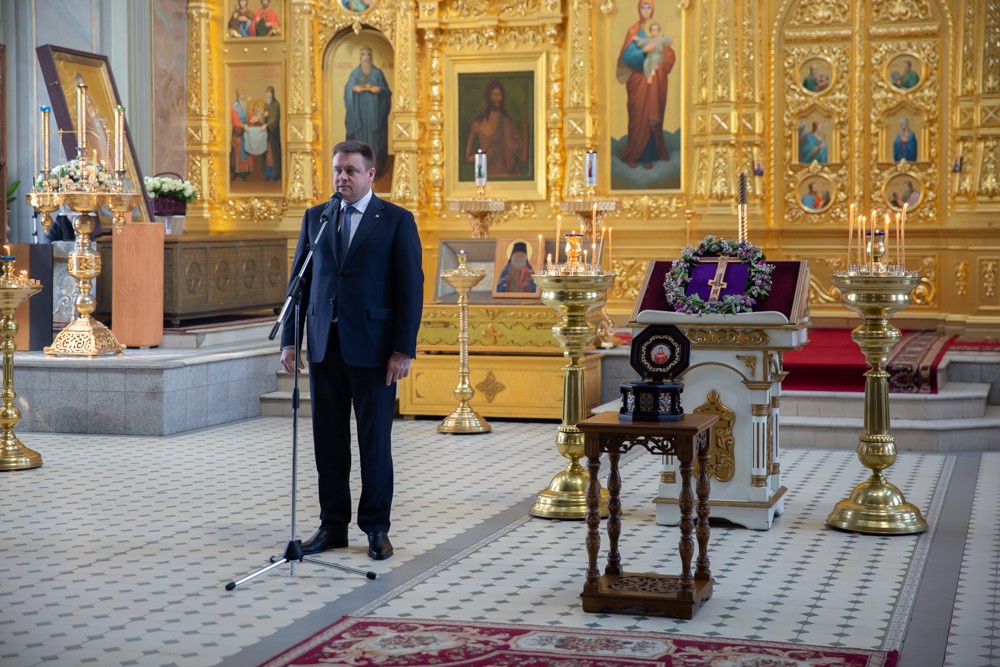 От лица полномочного представителя Президента РФ в ЦФО И.О. Щеголева Никольский Шостьенский монастырь и верующих Рязанской области поздравил заместитель полпреда Президента РФ в ЦФО А.В. Еремин.