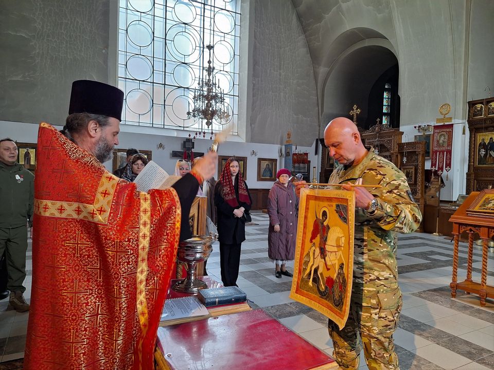 В богослужении приняли участие военнослужащие добровольческого отряда имени святого благоверного князя Александра Невского. Игумен Иосиф (Крюков) тепло и сердечно поприветствовал бойцов с амвона, пожелав им Божией помощи.