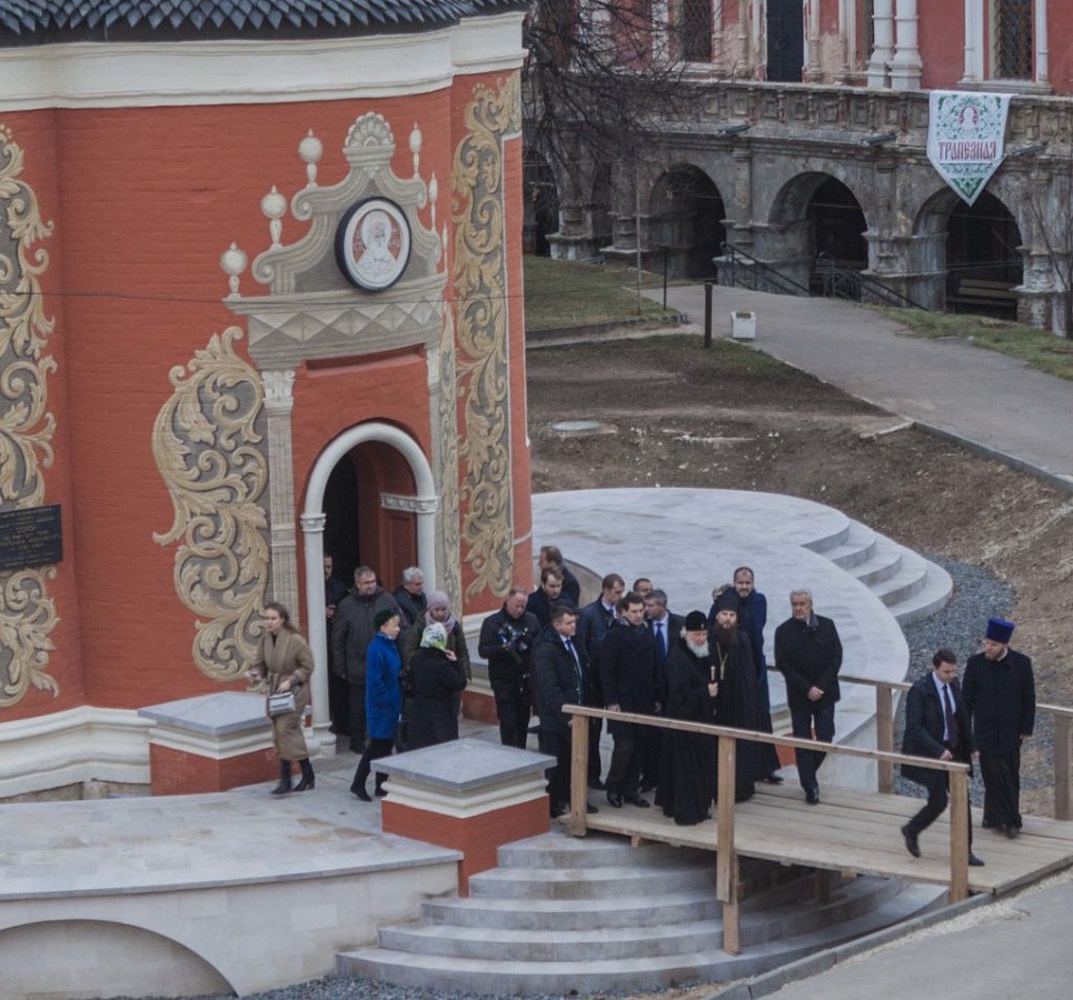 Отец Петр рассказал гостям о предварительных результатах реставрационных работ и показал часть объектов архитектурного ансамбля. «История Высоко-Петровского монастыря тесно переплетена с эпохами становления и развития Москвы. Сегодняшнее посещение обители мэром столицы С.С. Собяниным связано с возрождением архитектурного ансамбля монастыря, которое проводится городом в последние годы. Много работы уже сделано, но впереди еще предстоит реставрация главных храмов и благоустройство территории», – рассказал игумен Петр.