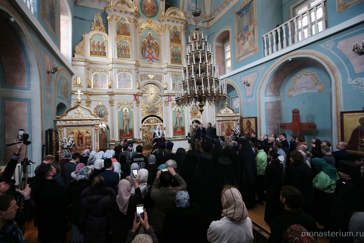 14 марта 2019 года, в четверг первой седмицы Великого поста, Святейший Патриарх Московский и всея Руси Кирилл молился за уставным богослужением в Заиконоспасском ставропигиальном мужском монастыре Москвы.