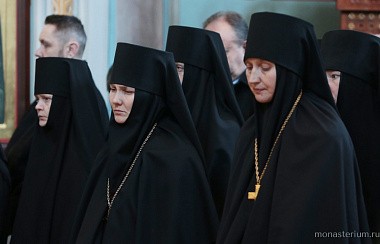 Утреня, часы, изобразительны и вечерня были совершены в верхней церкви в честь иконы Божией Матери «Всех скорбящих Радость» Спасского собора обители.