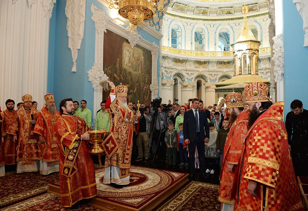 Поделюсь лишь коротко своими ощущениями. Когда в 2008 году вместе с Патриархом Алексием II мы находились в стенах этого собора, у меня действительно было ощущение, что восстановление такой жемчужины будет исключительно сложным, можно даже сказать, практически, нереализуемым. И сегодня мы видим, как прекрасно выглядит собор. Все его благоукрашения являются трудом огромного количества людей нашей страны.