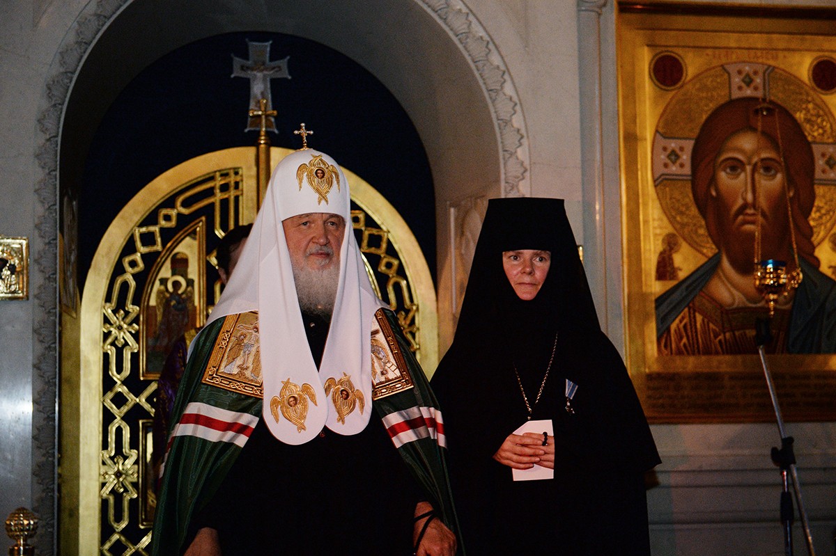 Во внимание к трудам на благо Святой Церкви и в связи с 45-летием со дня рождения Святейший Патриарх Кирилл наградил игумению Ксению (Чернегу), руководителя Юридической службы Московской Патриархии, настоятельницу Алексеевской обители, медалью святой равноапостольной княгини Ольги.