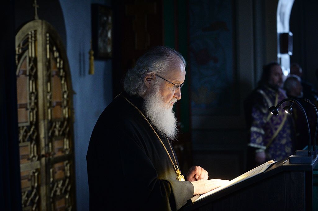 На малом повечерии Святейший Владыка читал трипеснец Триоди, на утрене Великого четверга – Евангелие.