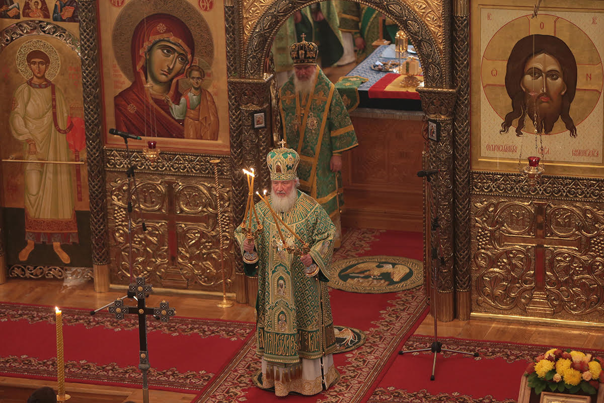После сугубой ектении Предстоятель Русской Православной Церкви вознес молитву о мире на Украине.