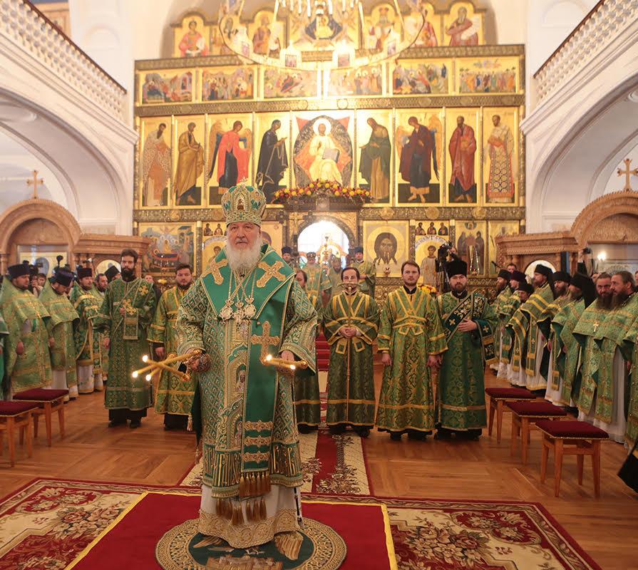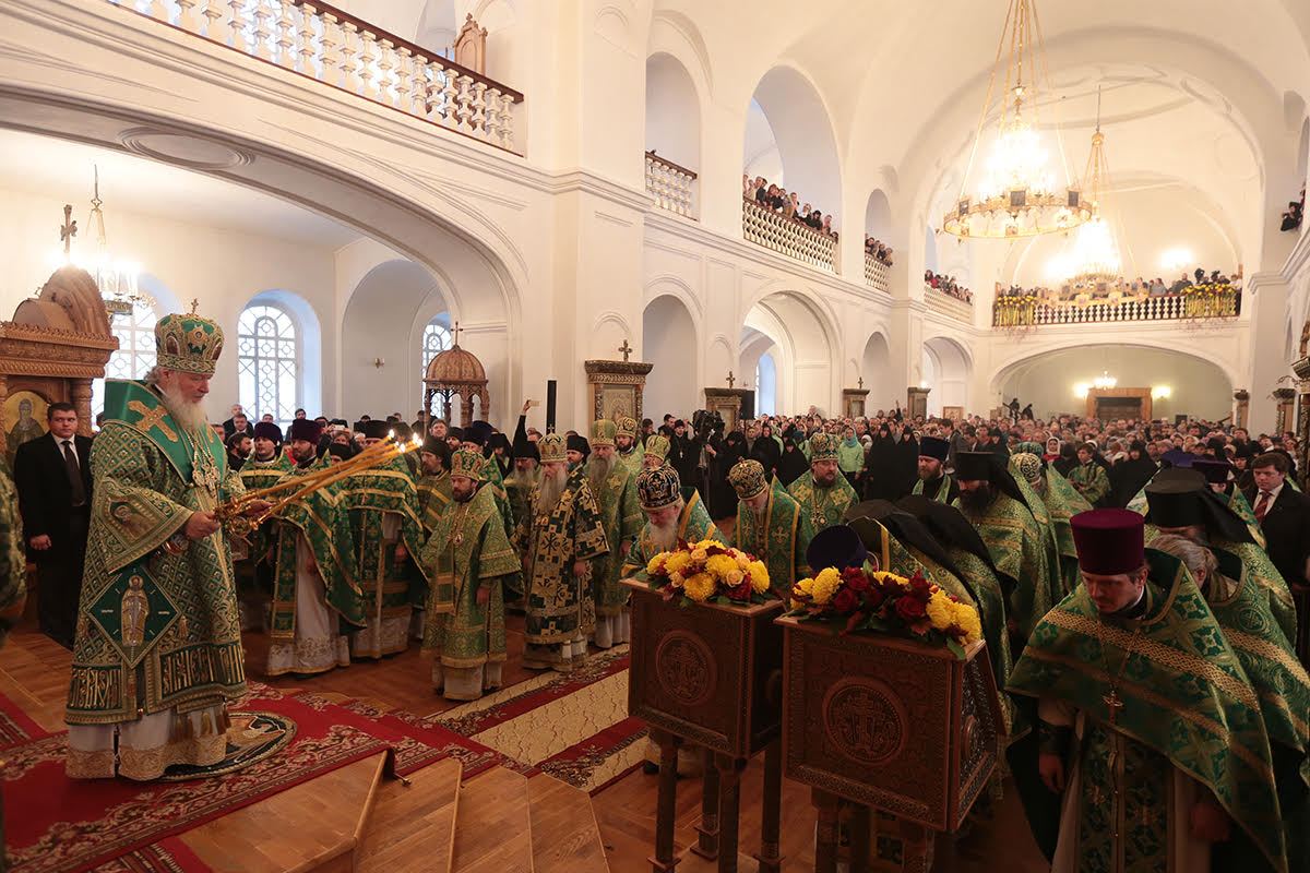 Предстоятель Русской Православной Церкви возглавил служение Божественной литургии в главном храме Казанской Амвросиевской пустыни – соборе в честь Казанской иконы Божией Матери.