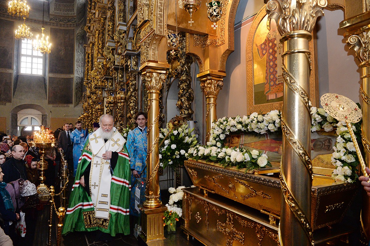 7 апреля 2017 года, в праздник Благовещения Пресвятой Богородицы и день преставления святителя Тихона, Патриарха Московского и всея России, Святейший Патриарх Московский и всея Руси Кирилл совершил молебен в Большом соборе Донского ставропигиального мужского монастыря Москвы, где находится рака с честными мощами святителя Тихона.