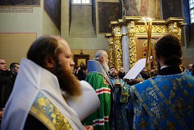 Его Святейшеству сослужили: митрополит Тверской и Кашинский Савва; архиепископ Солнечногорский Сергий, руководитель Административного секретариата Московской Патриархии; епископ Дмитровский Феофилакт, наместник Андреевского ставропигиального монастыря; епископ Ржевский и Торопецкий Адриан; епископ Бежецкий и Весьегонский Филарет; епископ Бронницкий Парамон, управляющий Северным и Северо-Западным викариатствами г. Москвы, наместник Донского монастыря; протопресвитер Владимир Диваков, секретарь Патриарха Московского и всея Руси по г. Москве; благочинные Северного и Северо-Западного викариатств г. Москвы; насельники Донской обители в священном сане.