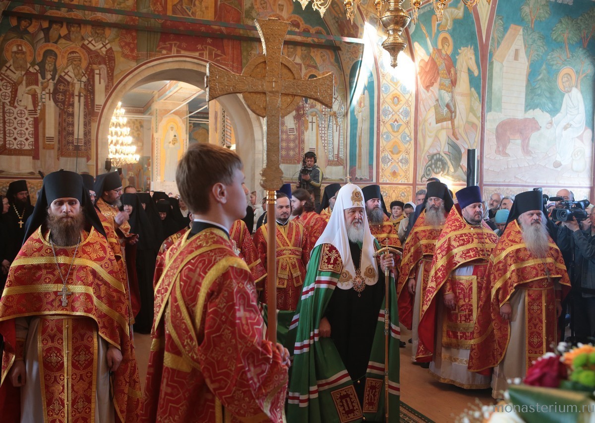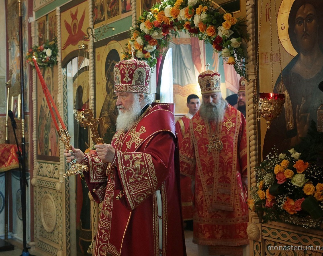 Предстоятель Русской Православной Церкви совершил чин великого освящения Никольского храма обители в Шостье в связи с завершением ремонтно-реставрационных работ и возглавил служение Божественной литургии в новоосвященном храме.
