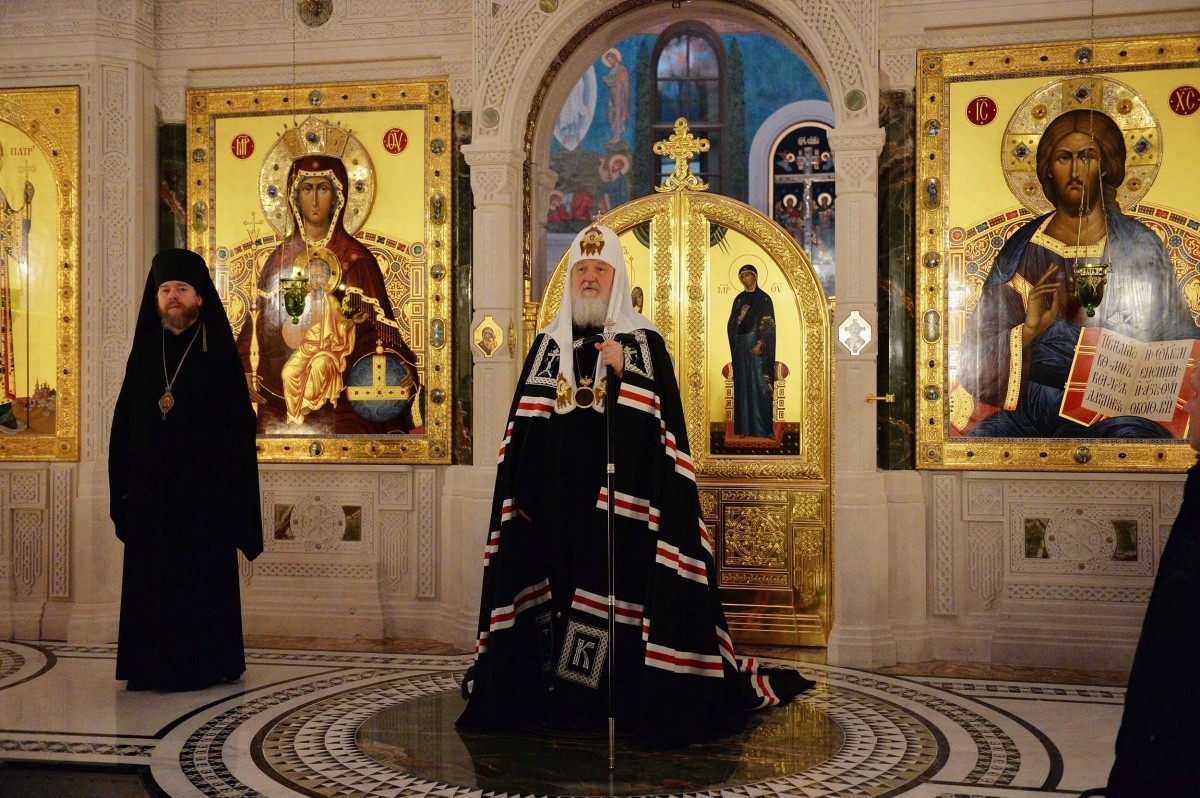В храме Воскресения Христова и Новомучеников и исповедников Церкви Русской Предстоятель Русской Православной Церкви совершил великое повечерие с чтением Великого покаянного канона прп. Андрея Критского.