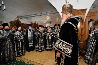 2 апреля 2018 года, в понедельник Страстной седмицы, Святейший Патриарх Московский и всея Руси Кирилл совершил Литургию Преждеосвященных Даров в Малом соборе Донского ставропигиального мужского монастыря Москвы.